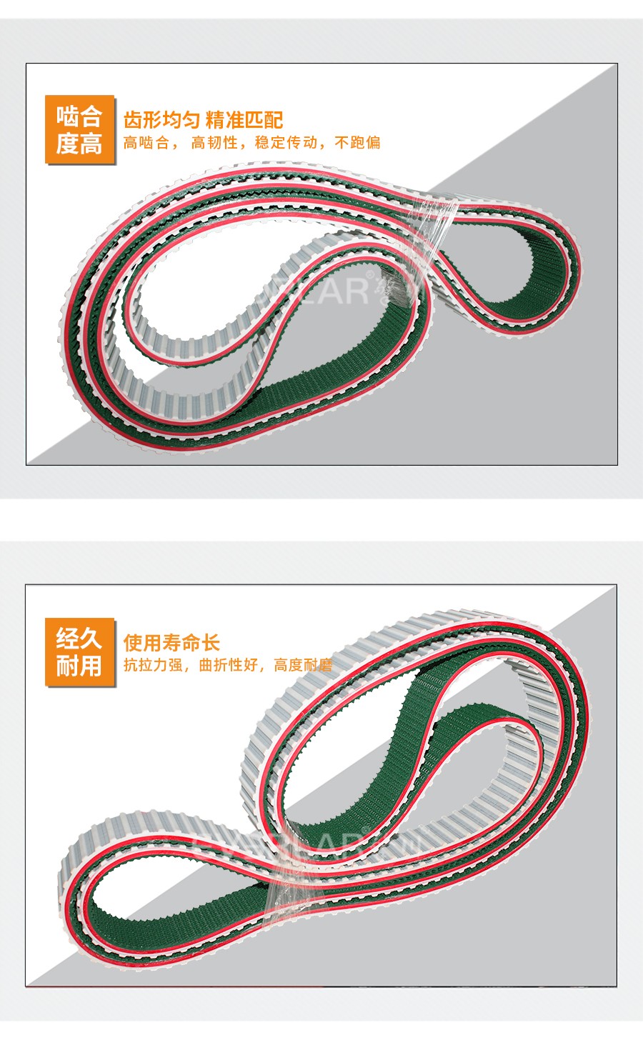 備注:PU同步帶加綠布圖片只是某一種加工后的樣式,可根據您生產的需要加工成其他的樣式,屬于非標產品(定制加工后不支持退換服務),報價僅供參考,詳細可直接聯系客服。