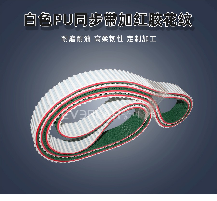 白色PU同步帶加紅膠花紋的尺寸可根據客戶的需求定做,所報價格為參考價格,價格按照具體尺寸定做。品質保障,超長質保和免費技術支持,如有需要,歡迎在線咨詢或來電:153-6054-1513!