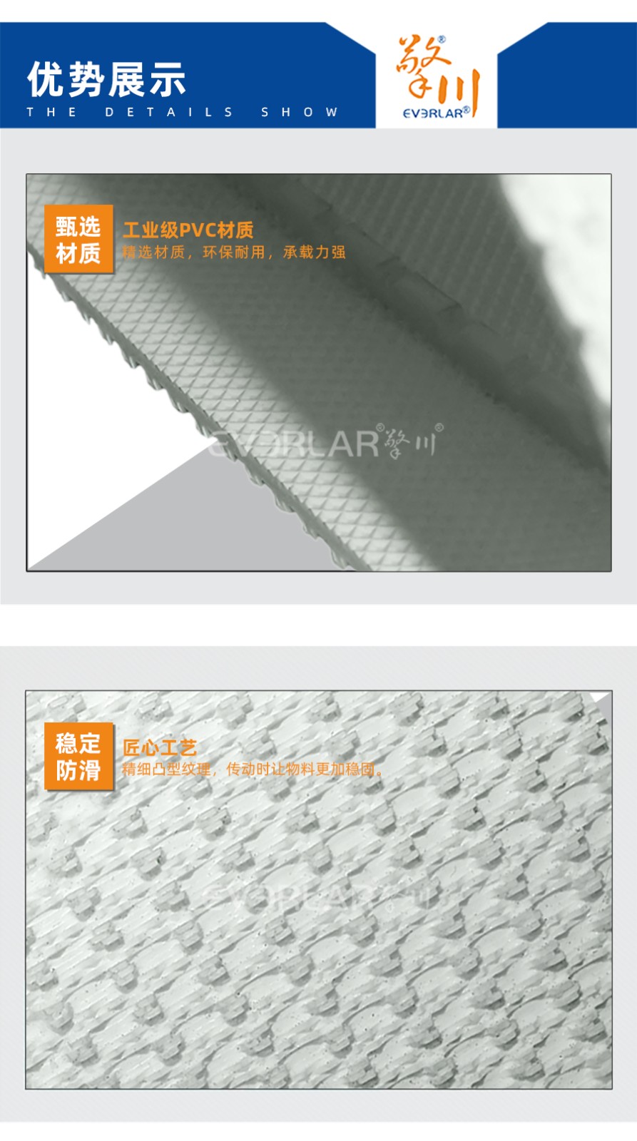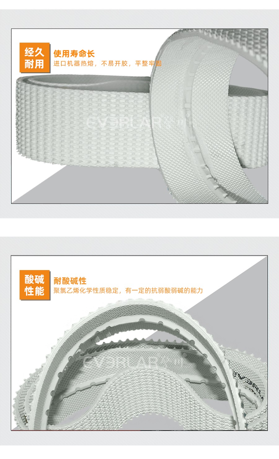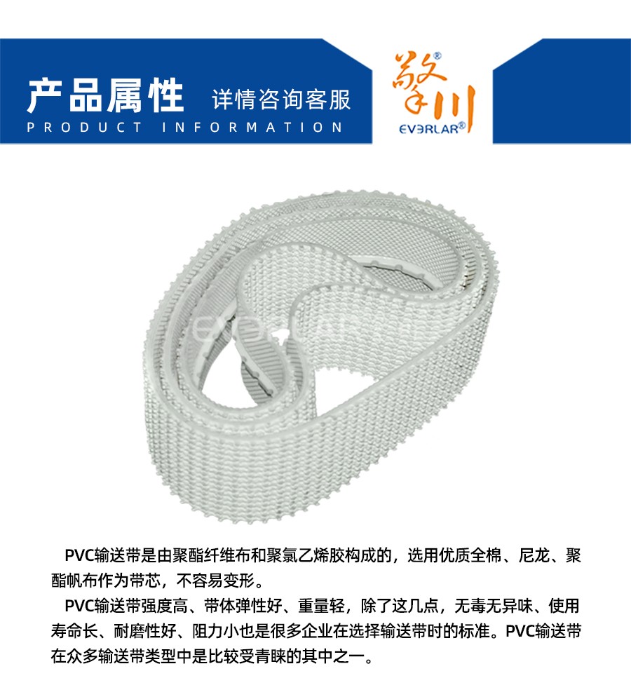 PVC輸送帶是由聚酯纖維布和聚氯乙烯膠構成的,選用優質全棉、尼龍、聚酯帆布作為帶芯,不容易變形。