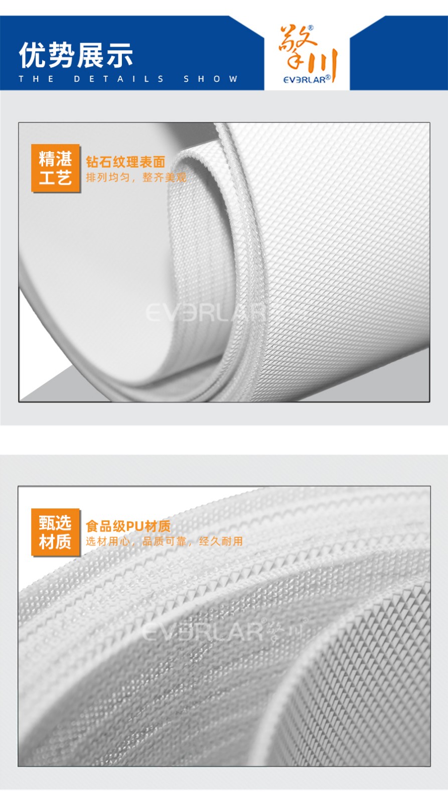 • 產品名稱:輸送帶定制白色鉆石紋PU輸送帶產品