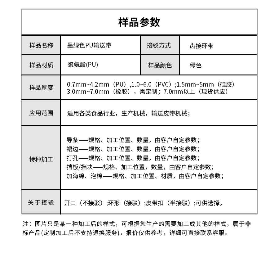 • everlar擎川定制墨綠色PU輸送帶食品包裝輸送皮帶