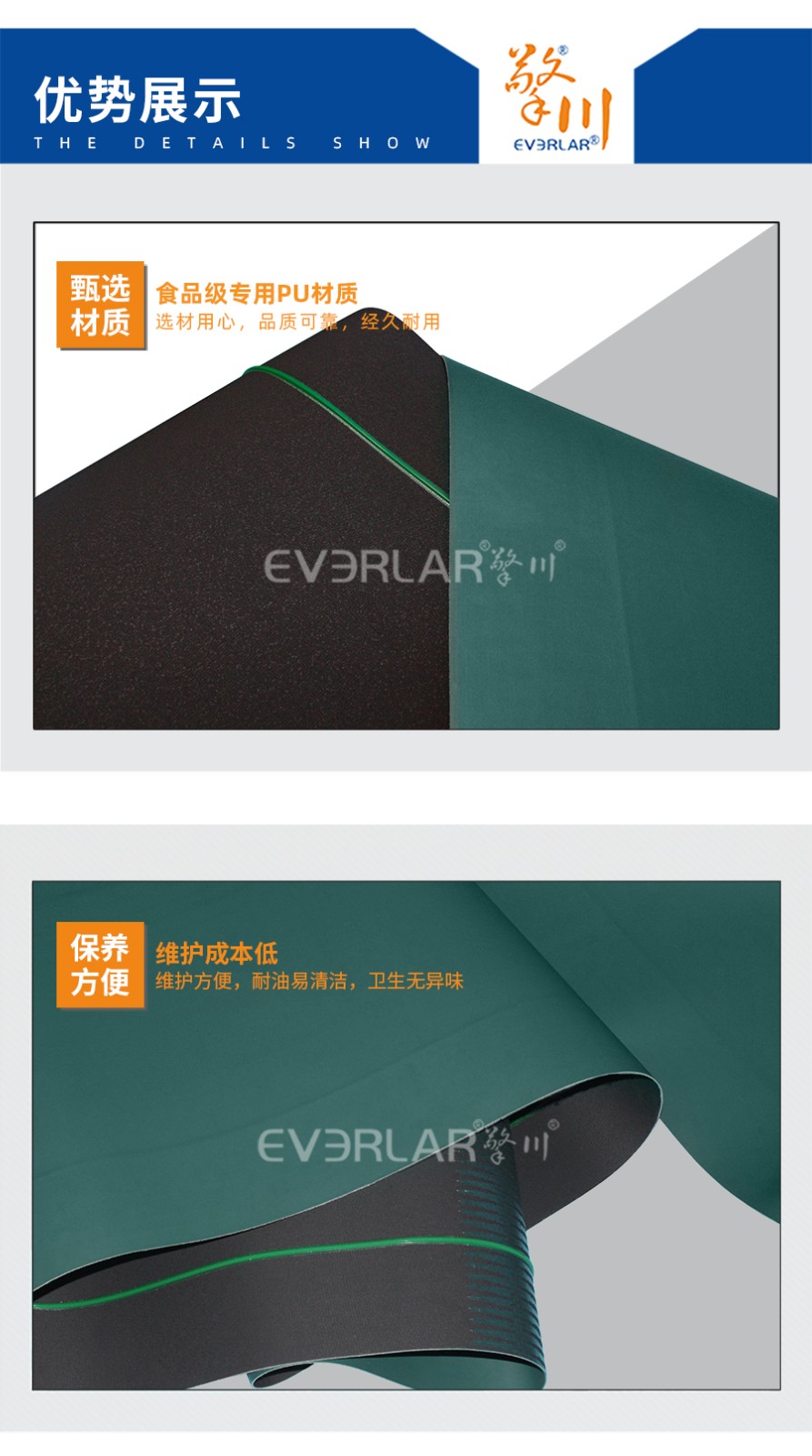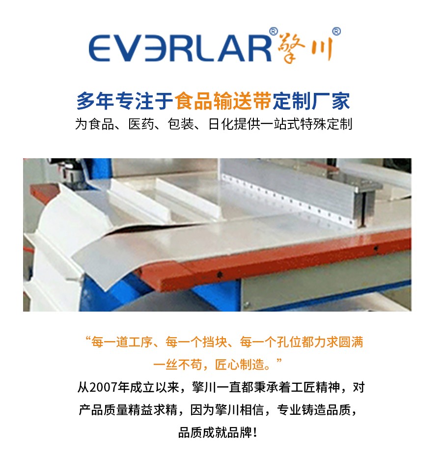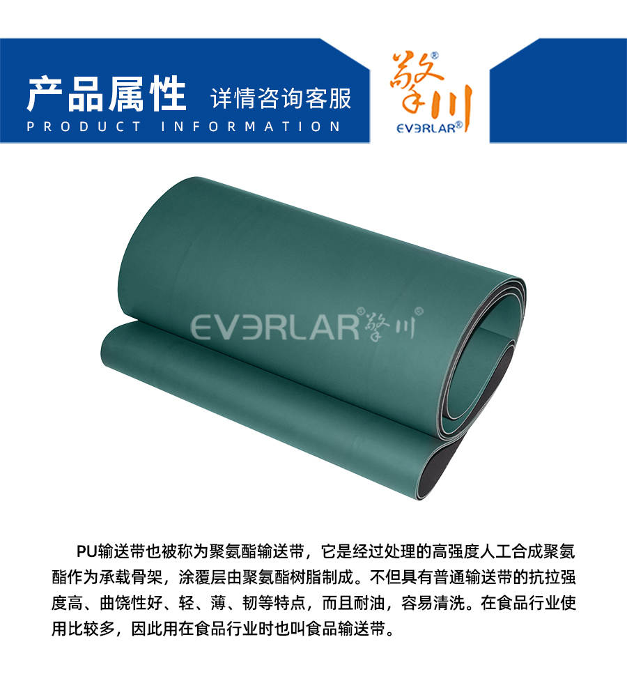 • 產品名稱:擎川everlar定制pu輸送帶墨綠色加雙導條食品輸送帶