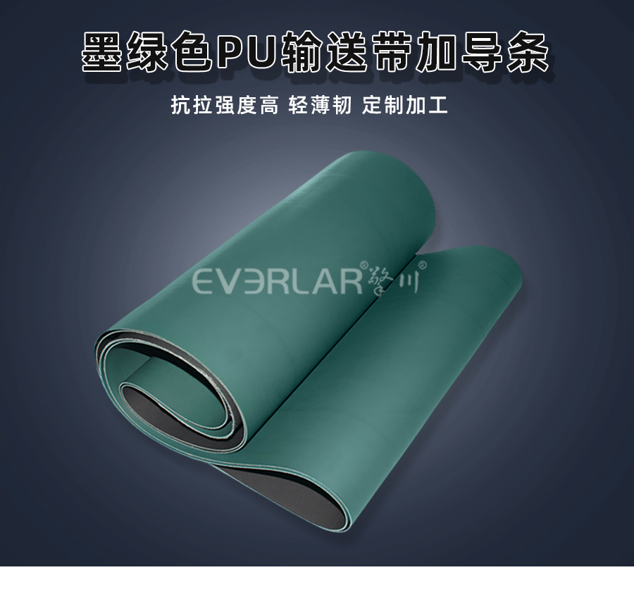 • 擎川everlar定制pu輸送帶墨綠色加雙導條食品輸送帶