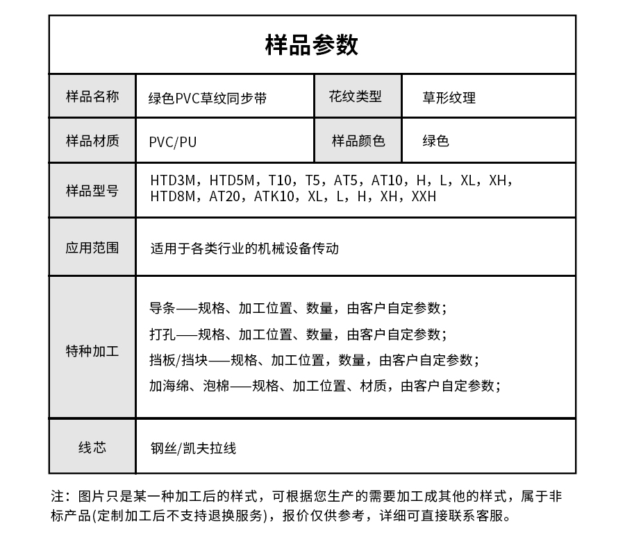 • 產品名稱:擎川everlar綠色草紋PU同步帶食品輸送帶