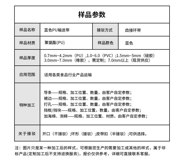 • 產(chǎn)品名稱:藍色PU輸送帶擎川食品輸送帶工業(yè)皮帶加工