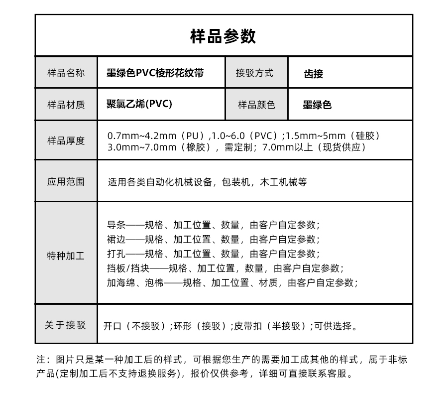 • 產品名稱:墨綠色PVC輸送帶耐磨防滑食品輸送帶工業皮帶