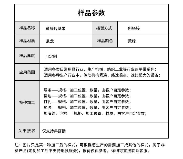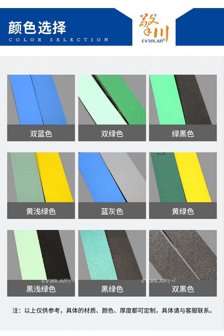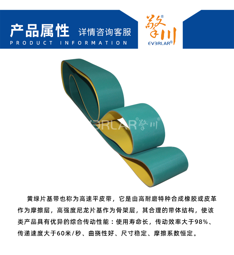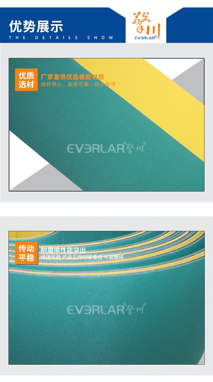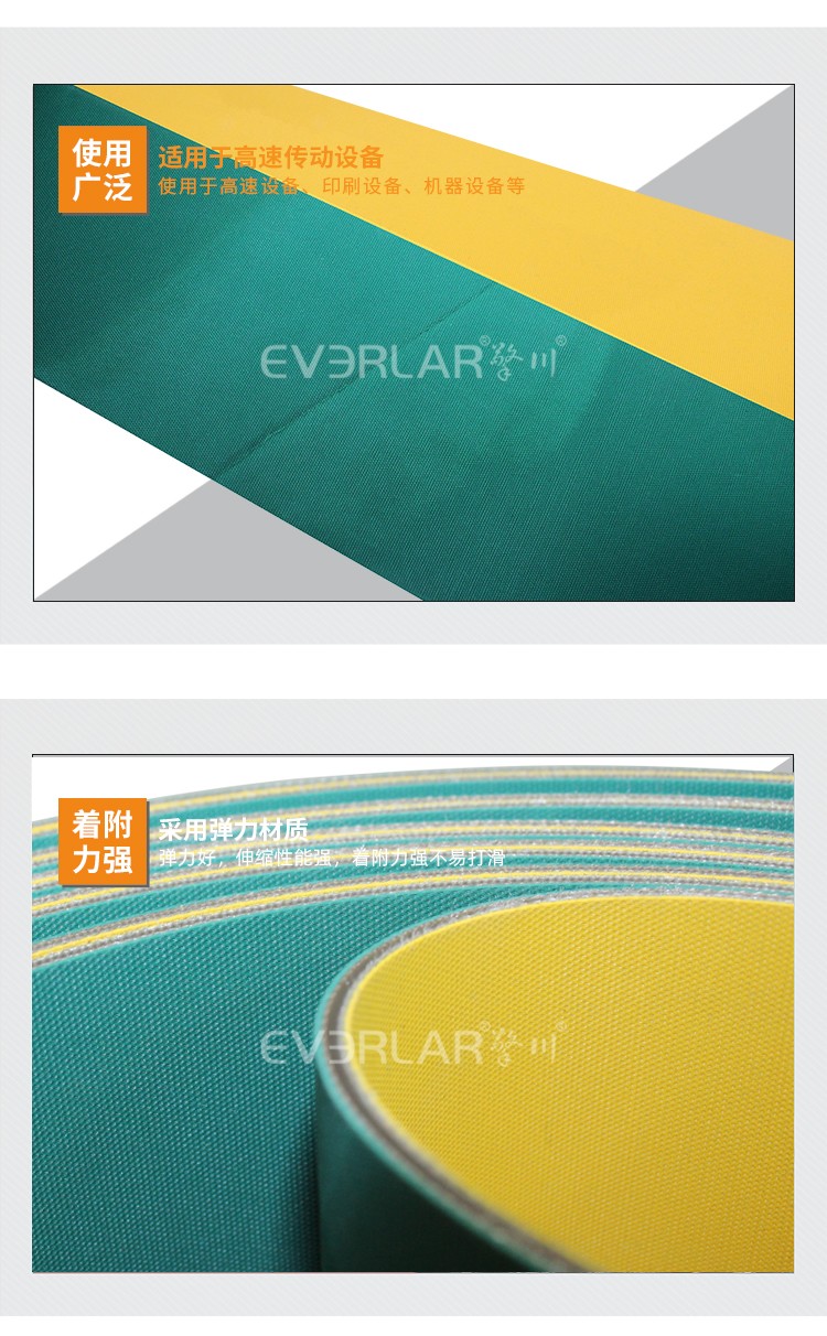 • 產品名稱:黃綠片基帶食品輸送帶定制擎川everlar工業皮帶