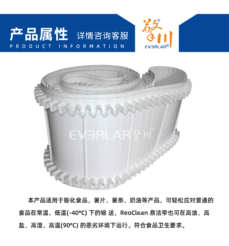 • 產品名稱:易清潔帶白色pu食品輸送帶易潔帶加導條加裙邊輸送帶