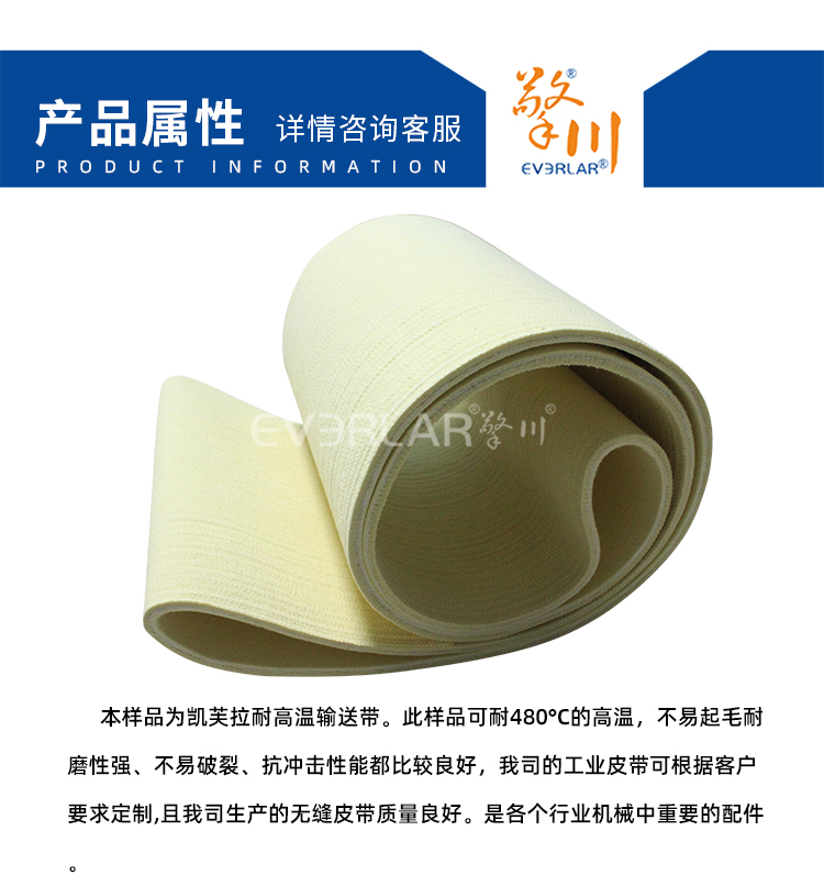 • 產品名稱:凱夫拉毛氈輸送帶耐磨耐高溫耐腐蝕工業皮帶定制