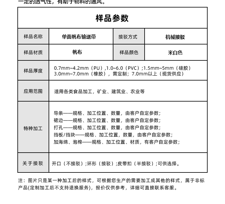• 產品名稱:單面帆布輸送帶耐磨耐高溫工業皮帶定制