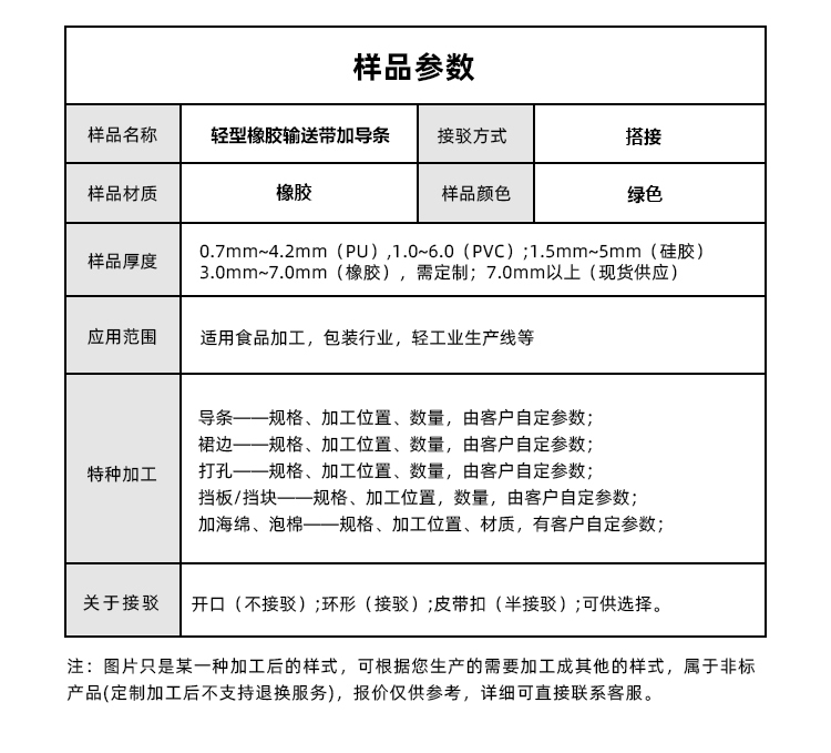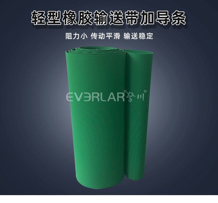 • 產品名稱:輕型橡膠輸送帶加導條耐磨平穩抗拉強度工業皮帶