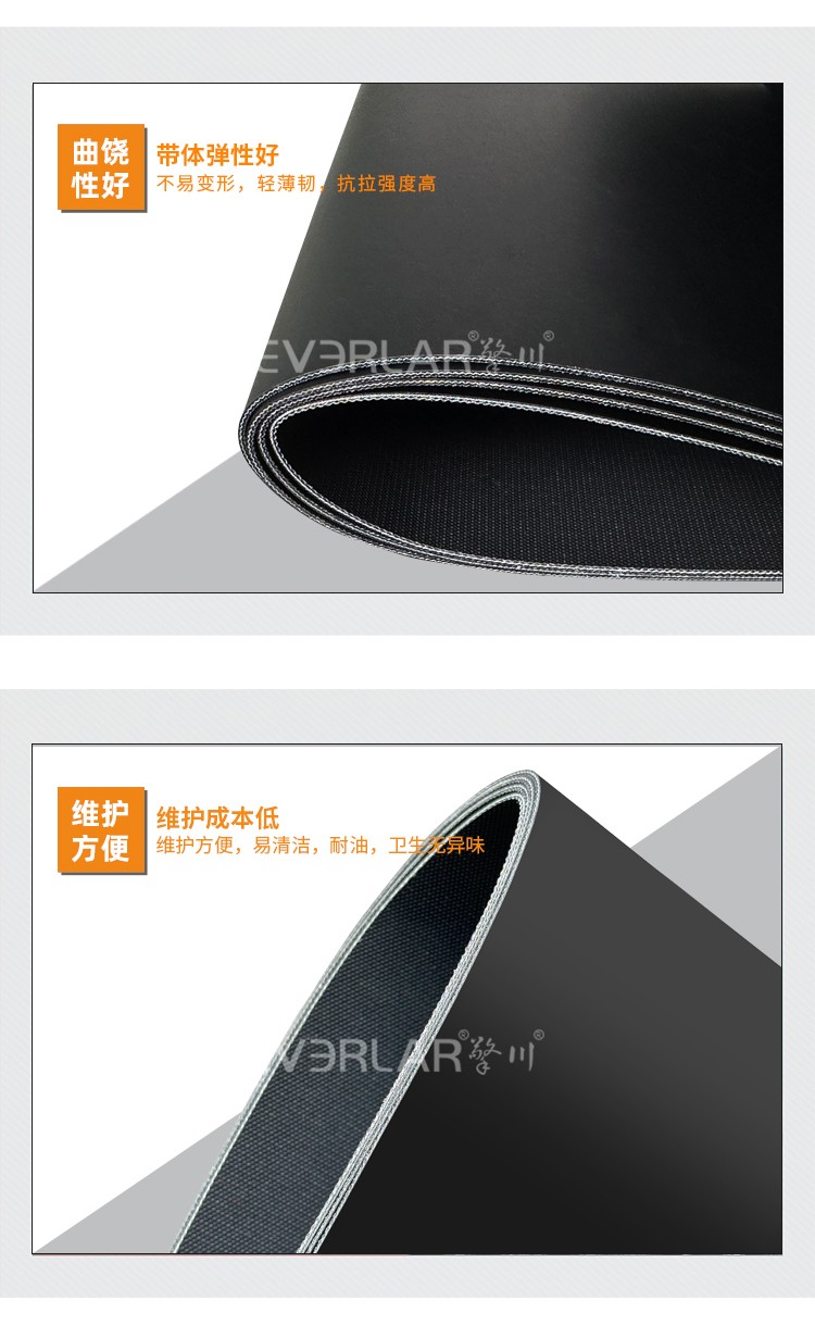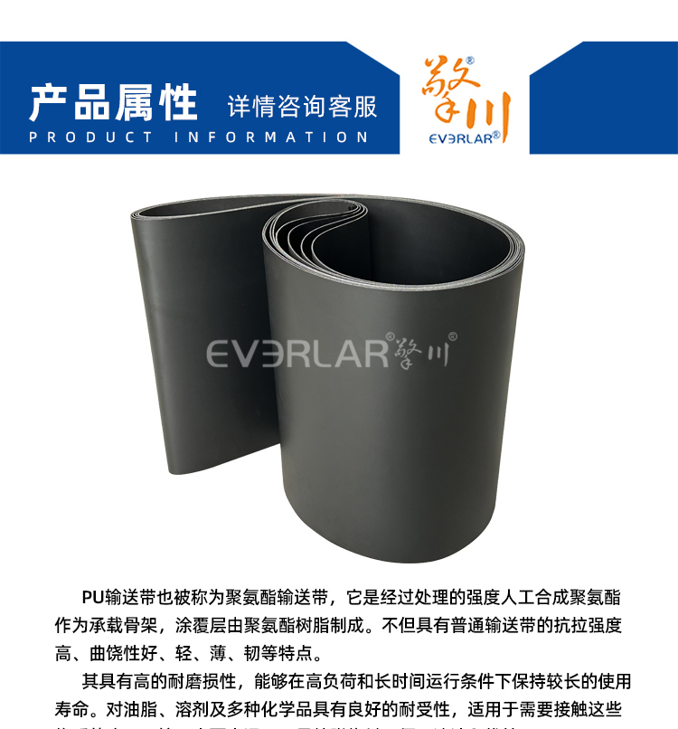 • 產品名稱:黑色PU輸送帶耐磨耐油耐腐蝕工業皮帶