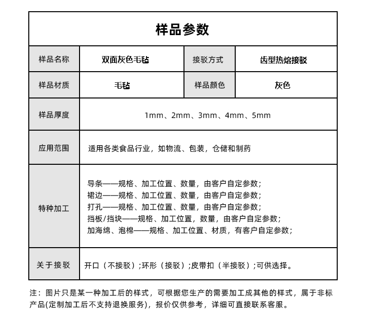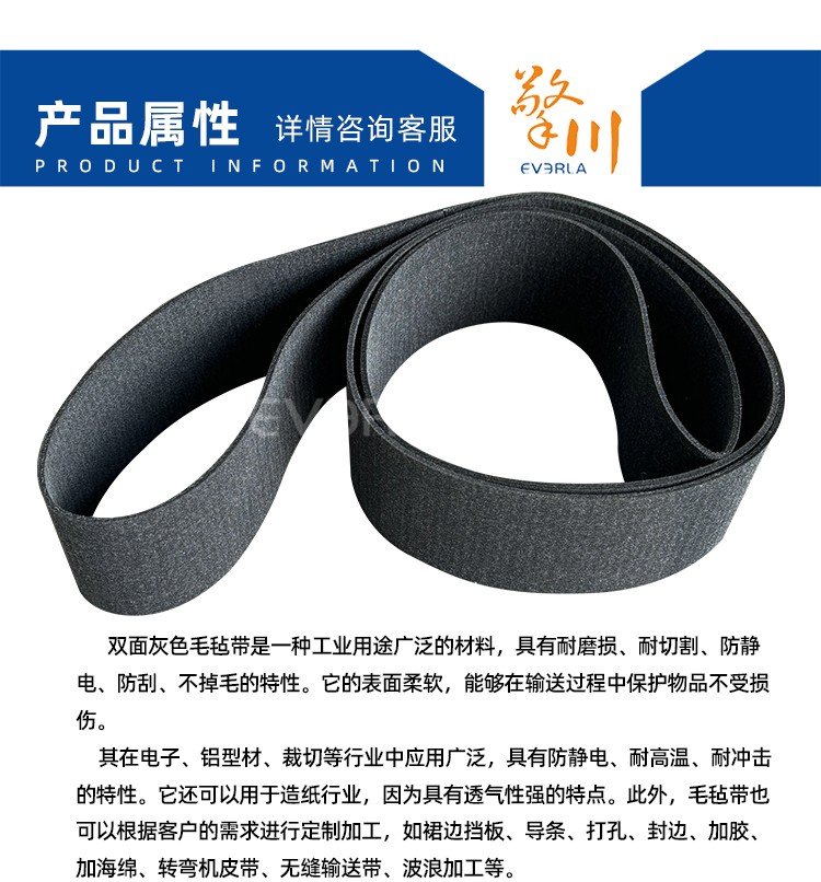 • 產品名稱:灰色毛氈輸送帶耐磨降噪防靜電工業皮帶