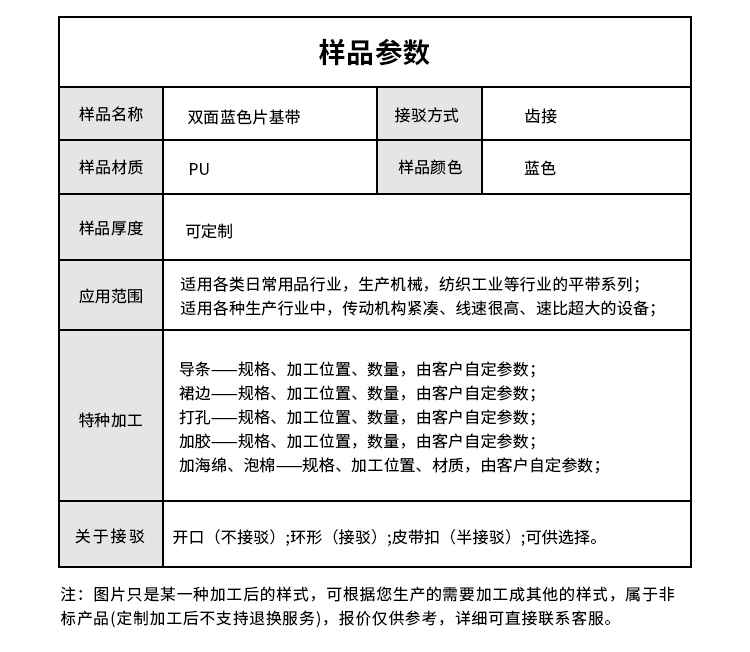 • 產(chǎn)品名稱:雙面藍色片基帶耐磨耐曲撓拉力強工業(yè)皮帶