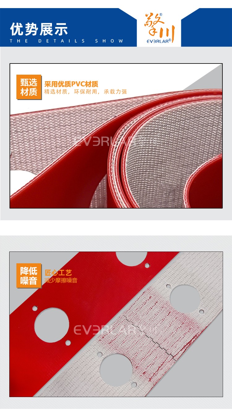 • 產品名稱:紅色PVC輸送帶打孔抗腐蝕食品包裝行業海鮮分揀流水線傳送帶廠家定制