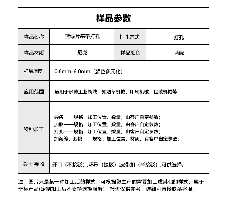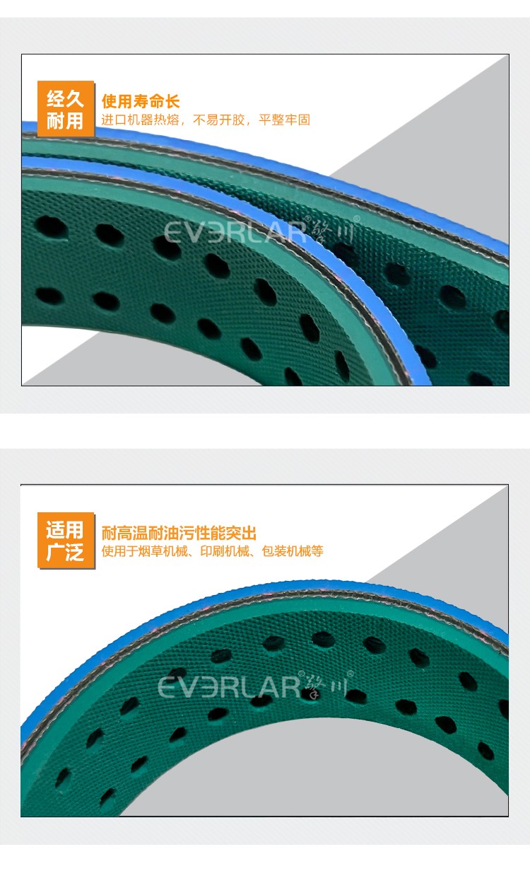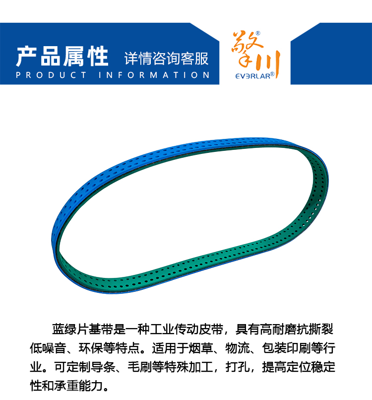 • 產品名稱:藍綠片基帶打孔耐磨防滑物流包裝行業分揀倉儲傳動平皮帶擎川定制