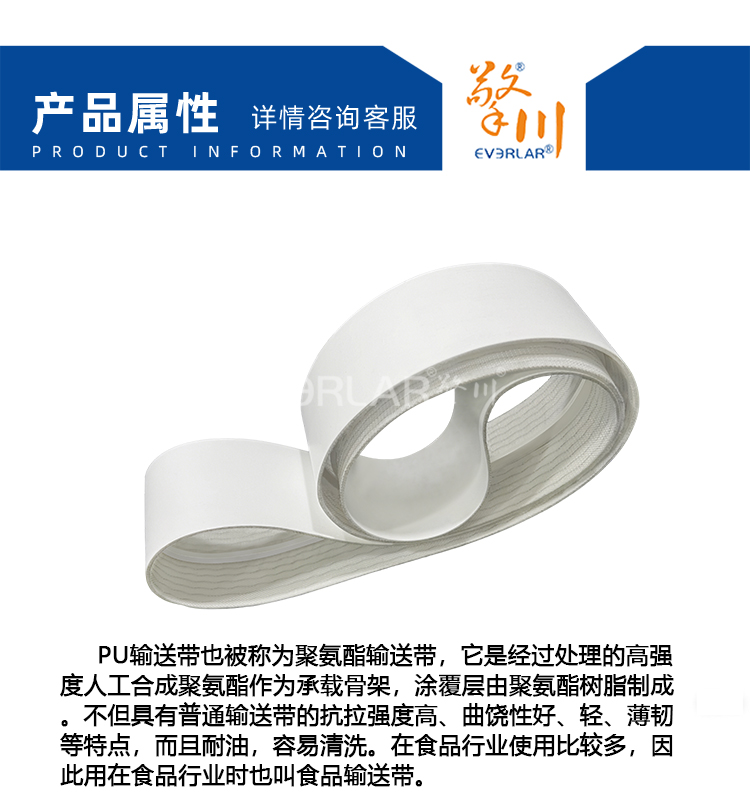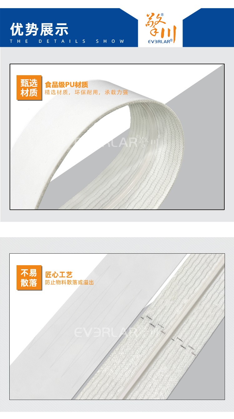• 產品名稱:白色食品級PU輸送帶加導條耐磨耐油日化行業輸送機械皮帶加工定制