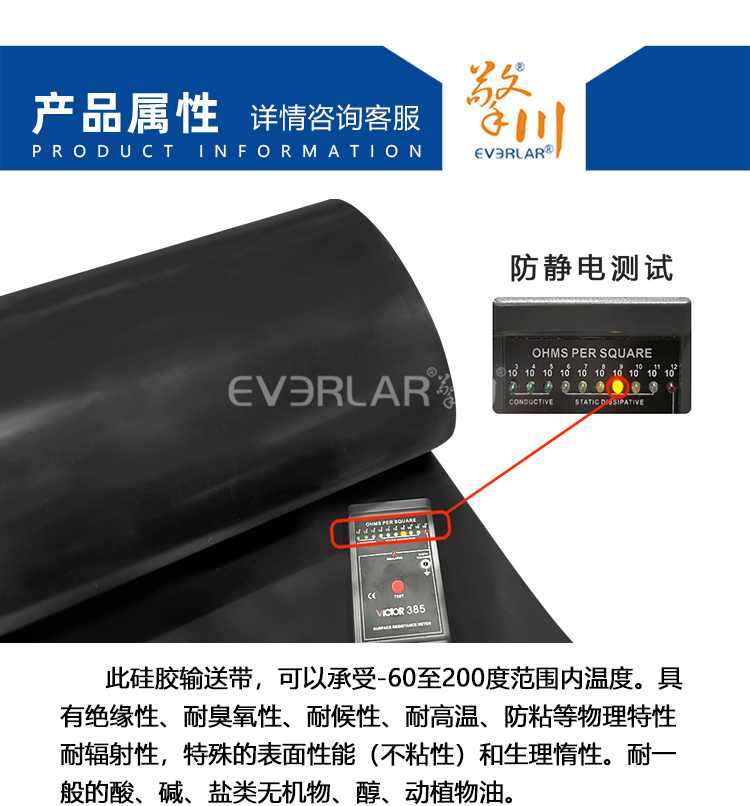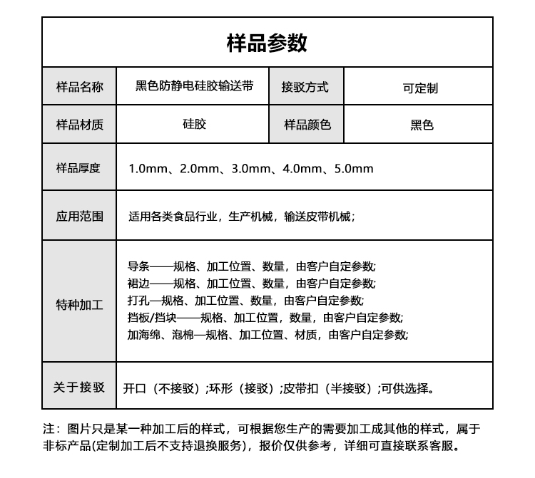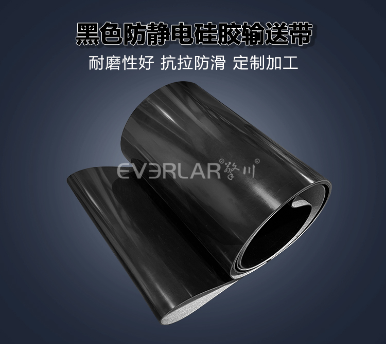 • 產品名稱:黑色硅膠防靜電輸送帶耐磨防滑精密儀器電子行業貼片機傳送帶