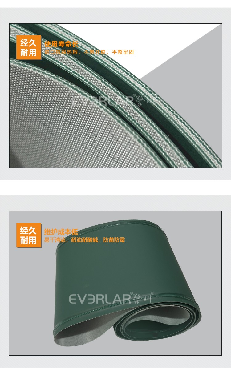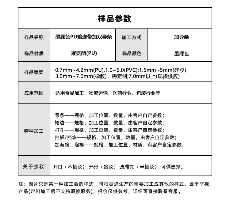 • 墨綠色PU輸送帶加雙導條耐磨抗撕裂食品電子物流分揀機皮帶擎川定制