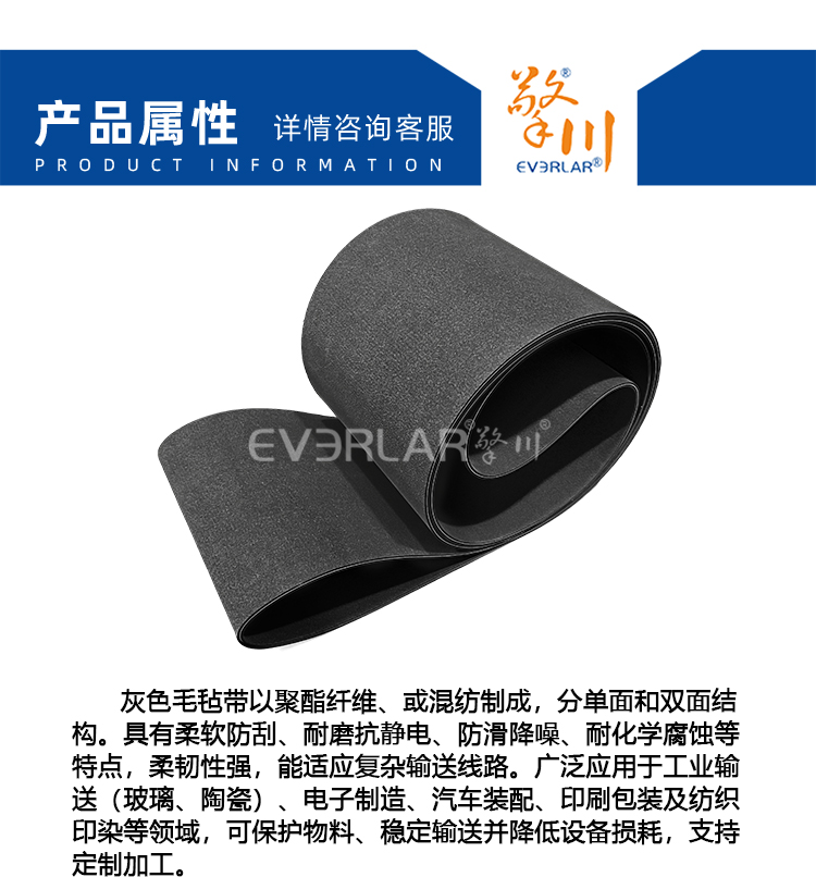 • 產品名稱:雙面毛氈輸送帶灰色防刮耐磨電子汽車裝配流水線工業皮帶