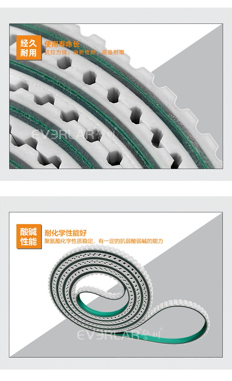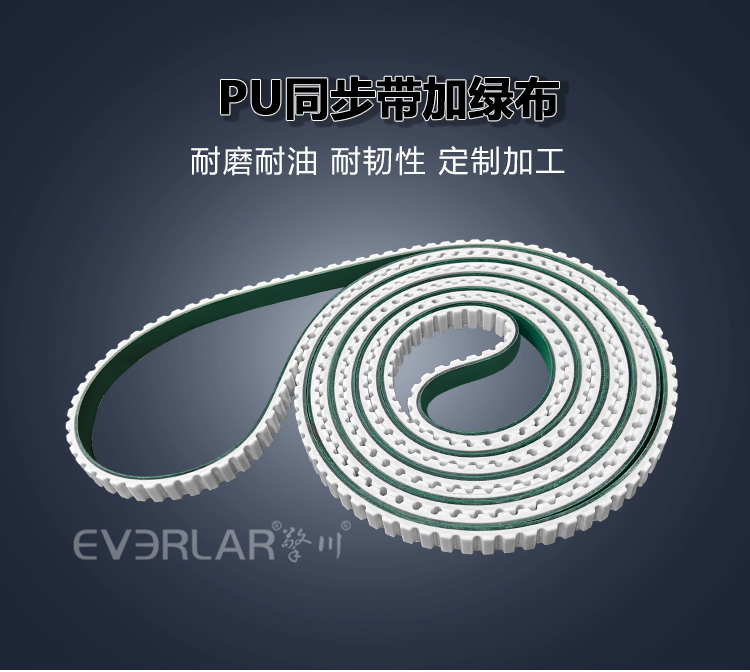 • 產品名稱:PU同步帶加綠布耐磨耐油食品包裝自動化生產線聚氨酯皮帶加工