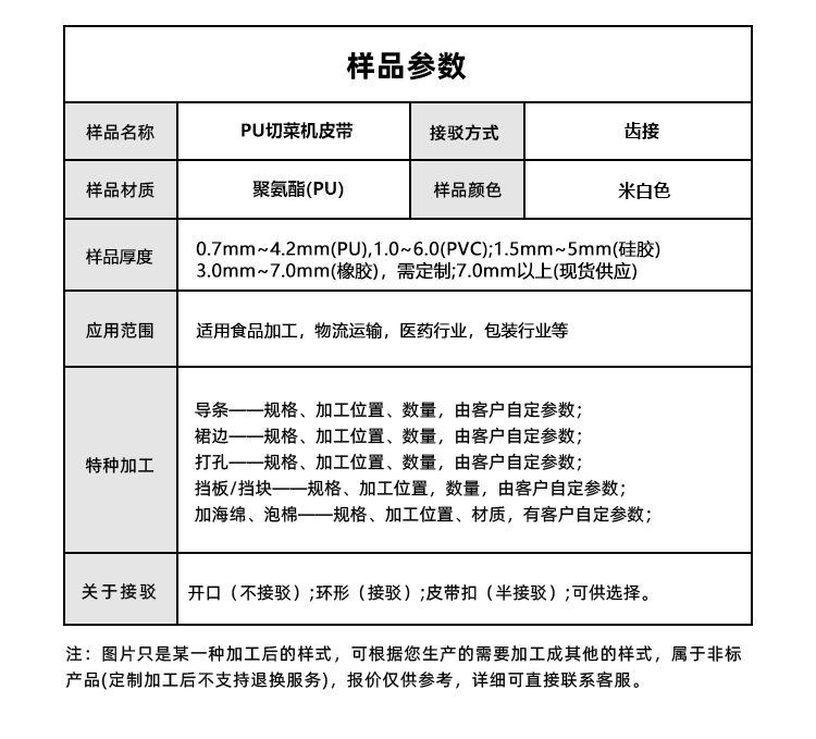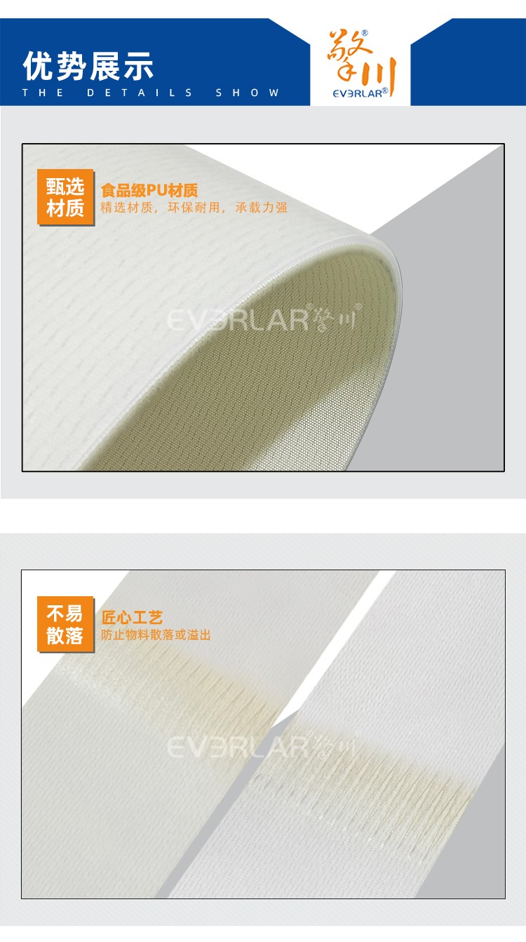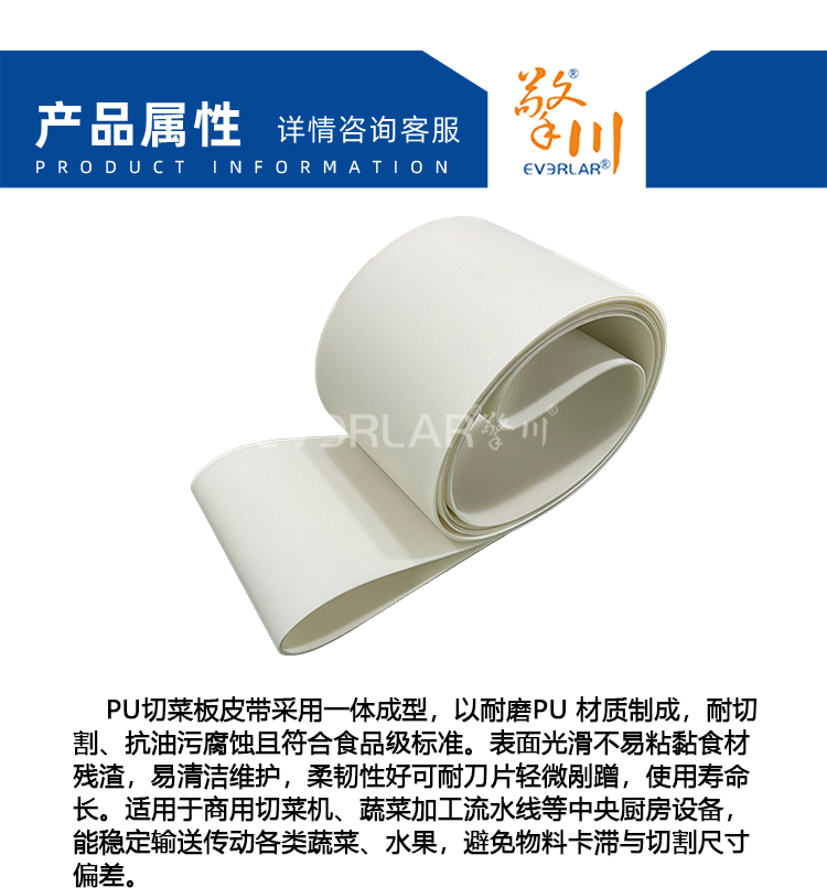 • 產品名稱:食品級PU切菜板皮帶耐切割易清潔中央廚房蔬菜加工流水線輸送帶