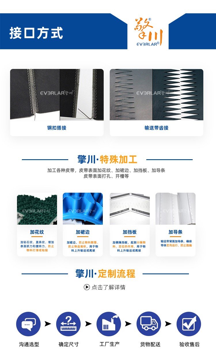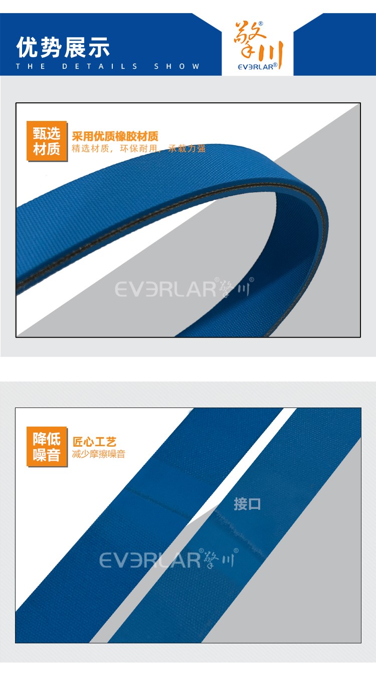 • 產品名稱:藍色尼龍片基帶低噪音防滑物流包裝行業折盒機傳動帶廠家直供