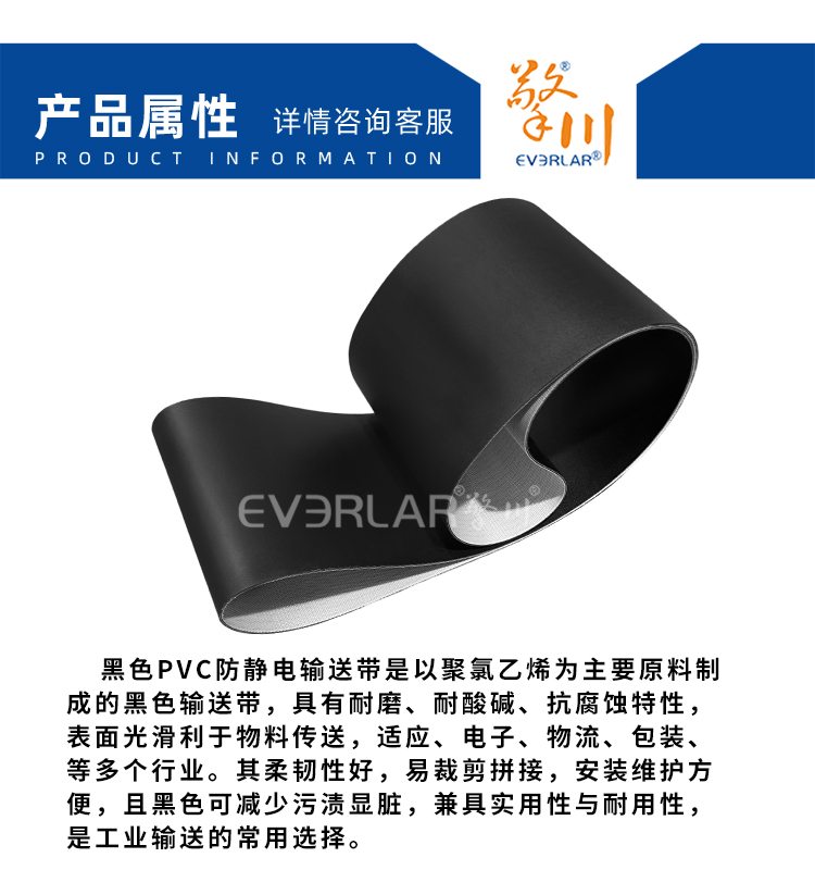• 產品名稱:擎川EVERLAR黑色PVC防靜電輸送帶電子元件傳輸流水線工業皮帶定制
