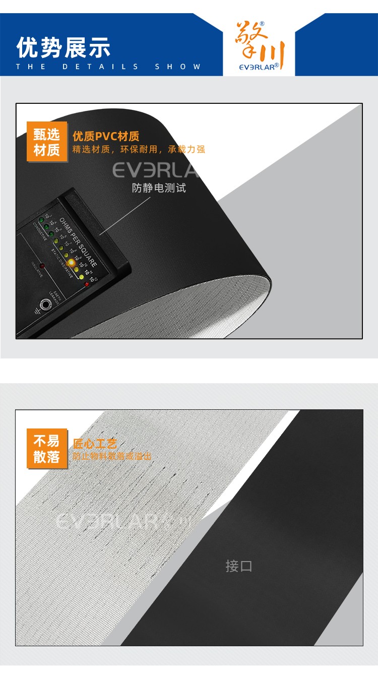 • 擎川EVERLAR黑色PVC防靜電輸送帶電子元件傳輸流水線工業皮帶定制