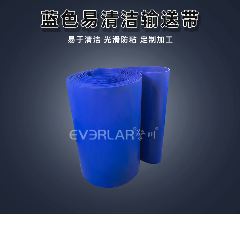 這款易清潔帶材質獨特,PU賦予其柔韌與耐用,藍色外觀簡約又大氣。其抗污能力堪稱一絕,在食品加工行業,面對油污、醬料等黏性物質,它絲毫不懼,物料不易附著,有效避免交叉污染,保障食品安全。在化工領域,各類化學物質灑落其上,也能輕松應對,不腐蝕、不變形。